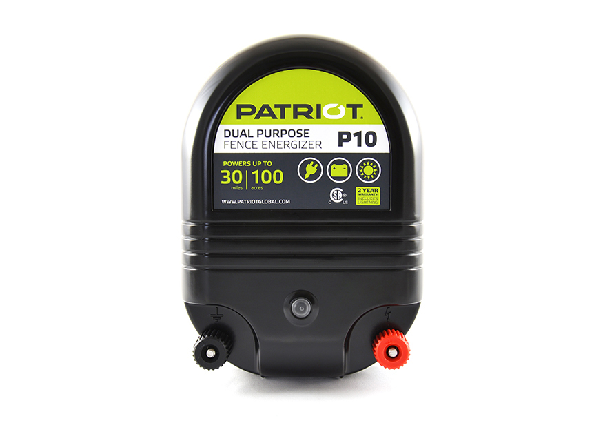 Solar panel* charges a 12 V (deep cycle, marine type) battery* to power the Patriot Dual Purpose energizer and fence line. Ideal for remote areas where AC (110 V) power is not available.
